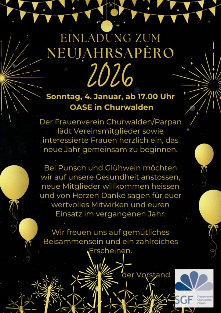 Bei einem kleinen Apéro möchten wir gemeinsam anstossen und das neue Jahr willkommen heissen.